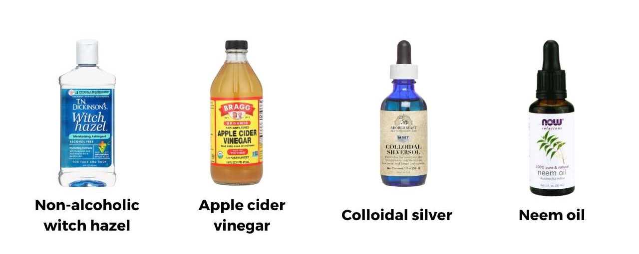 This is the base of the cleanser. Witch hazel is a natural topical skin remedy and an astringent, which means it helps dry out excess moisture. That matters because moisture feeds infection.