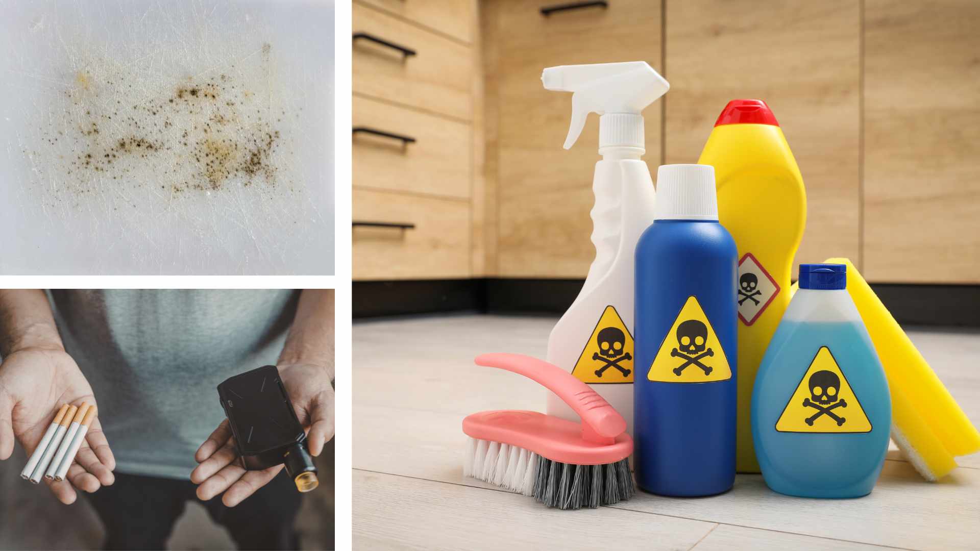 Asthma attacks are usually triggered by airborne allergens. Common triggers include mold spores, dust and dust mites, cat litter dust, cat dander, pollens, household cleaners, air pollution, perfumes, air fresheners, pesticides, fertilizers, and smoke from cigarettes, vaping devices, or fireplaces.