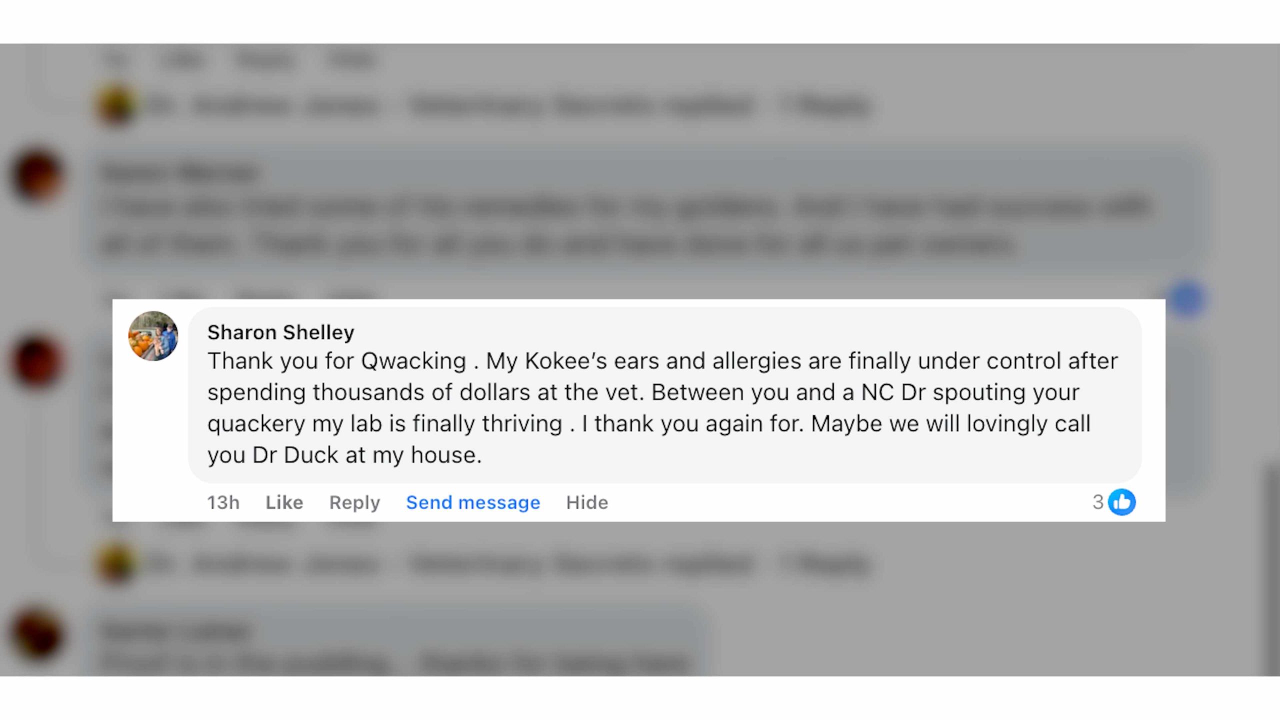 He wrote an extensive article attacking me and later updated it, grouping me with other so called “quack” vets, including the highly respected Dr. Jean Dodds.