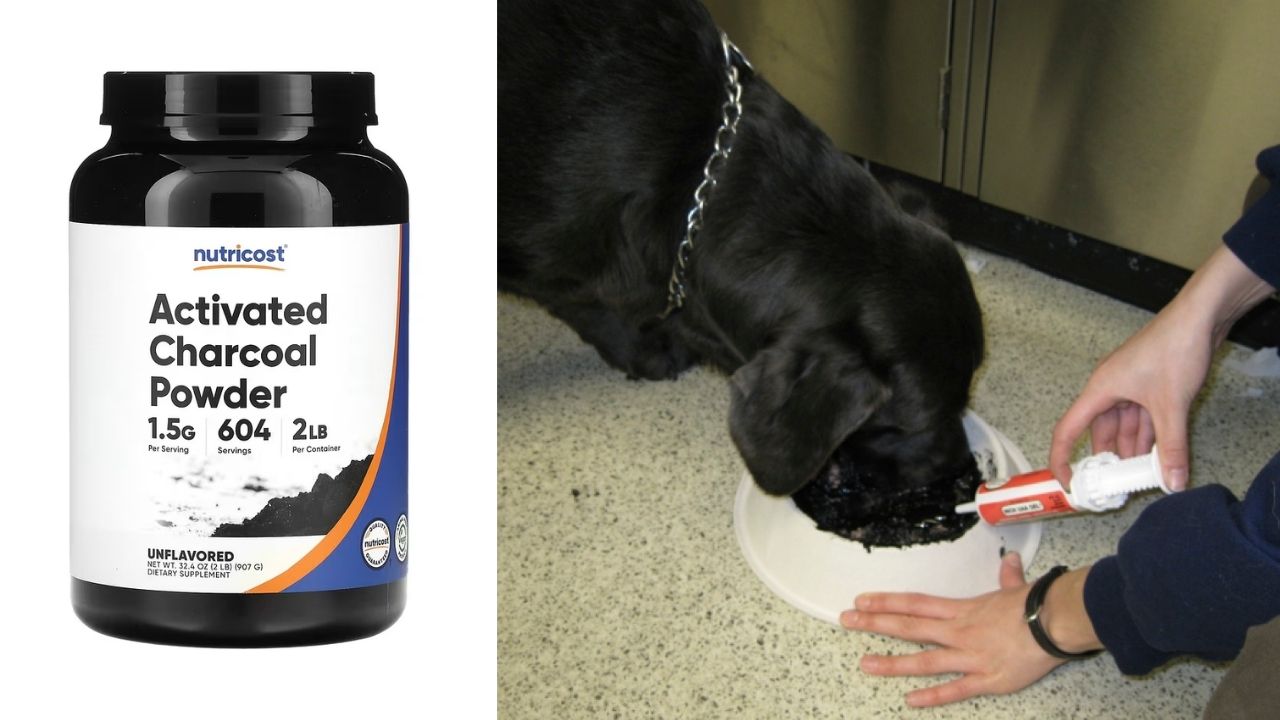 After vomiting, I give activated charcoal to help bind any remaining toxin.