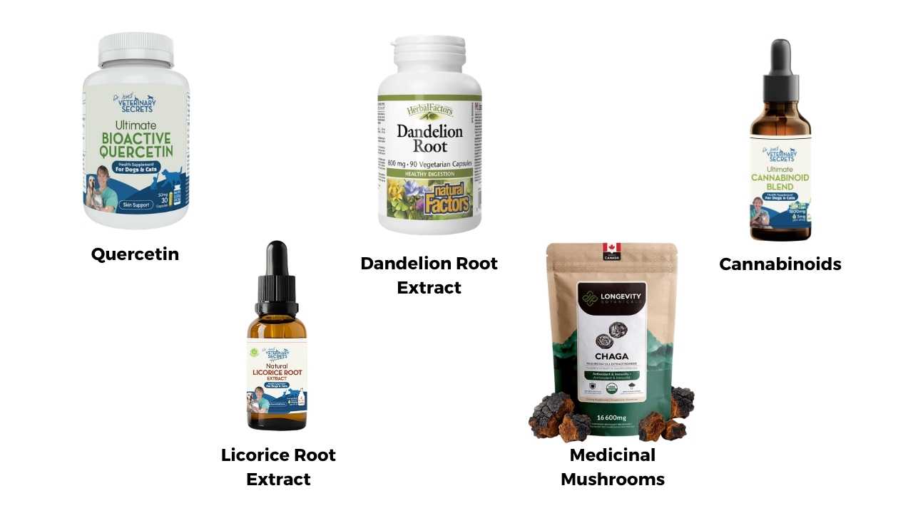 - Quercetin: 50 to 100 mg per 10 lbs daily