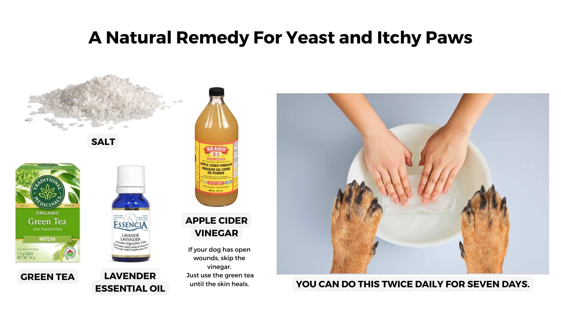 For a natural remedy for yeast and itchy paws, here is what you will need: