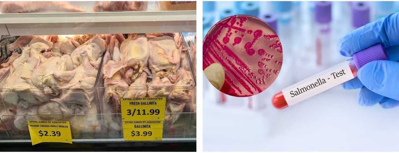 Salmonella is not inside the meat. It comes from the intestinal tract of the chicken.