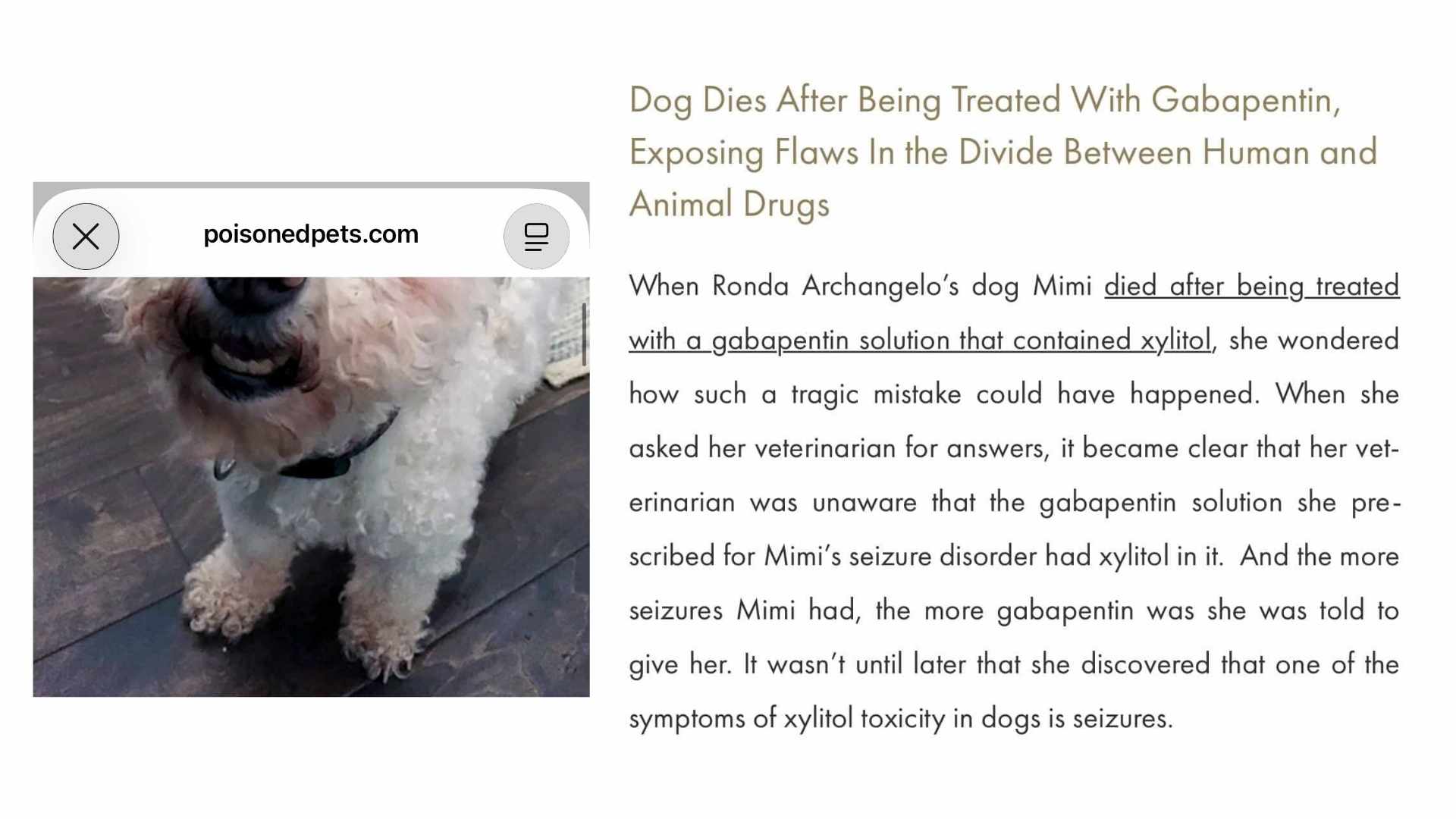 She searched online and found that some liquid gabapentin formulations can contain xylitol.